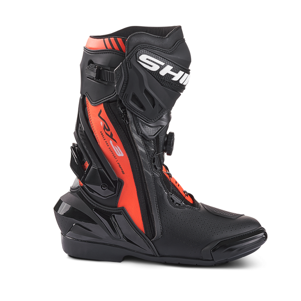 Zaprojektowane z myślą o maksymalnej ochronie i komforcie podczas sportowej jazdy. Pod względem konstrukcyjnym wykonane są z wysokiej jakości skóry i zamszu, które cechuje zwiększona odporność na uszkodzenia. Na przodzie znajduje się perforacja, która umożliwia dopływ chłodnego powietrza. Cholewka butów jest wyprofilowana, co znacznie ułatwia przyjęcie pochylonej pozycji na motocyklu. O bezpieczeństwo nóg dba system APS™, który usztywnia staw skokowy, chroniąc go przed niepożądaną kontuzją. Wzmocniono także obszar pięt, palców i kostki. Model VRX-3 wyposażony jest w slidery SAP™ na palcach, które w razie zużycia łatwo i sprawnie wymienisz na nowe. Odblaski umieszczone na pięcie zwiększają bezpieczeństwo bierne. Wygodne zakładanie butów zapewnia boczny zamek, a za pomocą innowacyjnego zapięcia ATOP zyskasz idealne i wygodne dopasowanie. Obszar, gdzie but styka się z dźwignią zmiany biegów, wzmocniono specjalną nakładką. Antypoślizgowa i wyprofilowana podeszwa gwarantuje bardzo dobrą przyczepność na podnóżku motocykla, jak i na asfalcie.