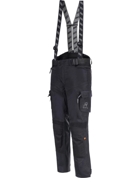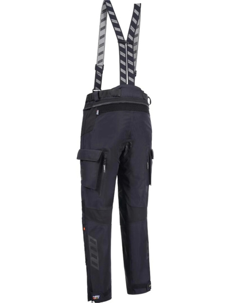 Spodnie motocyklowe Ecuado-R renomowanej fińskiej firmy Rukka to model głownie przeznaczony do turystycznych wypraw motocyklowych. Spodnie łączą w sobie najważniejsze cechy odzieży motocyklowej - bezpieczeństwo i komfort użytkowania. Opracowana na bazie odpornego na ścieranie i rozdarcia materiału Cordura oraz trójwarstwowej, laminowanej membrany Gore-Tex PRO o właściwościach wodoodpornych i wiatroszczelnych. Takie połączenie sprawia, że kurtka Ecuado-R wyróżnia się niezwykłą wytrzymałością, a przy tym mamy pewność, że poradzi sobie w niemal każdych warunkach. Kolana i biodra chronione są certyfikowanymi ochraniaczami Rukka D3O Air XTR, które słyną z doskonałej absorpcji siły uderzenia. Dodatkowo strefa kolan i bioder wzmocnienia jest wstawkami z materiału Cordura 1500D. Długi zamek błyskawiczny umożliwia komfortowe spięcie spodni z kurtką. Regulowana talia, a także końcówki nogawek zapewniają możliwość lepszego dopasowania spodni. Ponadto spodnie Ecuado-R posiadają elastyczne panele, zwiększające swobodę ruchów w czasie podróżowania motocyklem. Spodnie można dodatkowo zaopatrzyć w szelki.