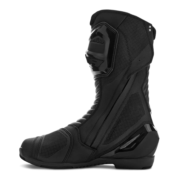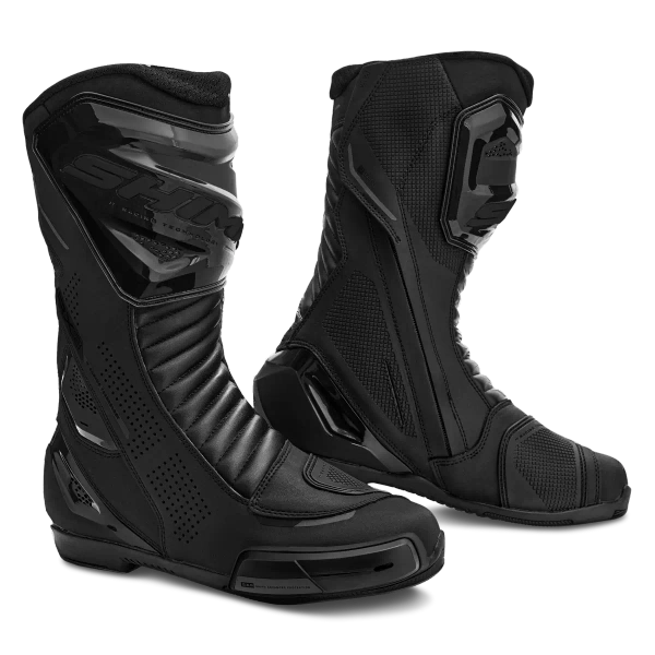 Buty SHIMA RX-3 to długie, sportowo-turystyczne buty motocyklowe, które łączą zaawansowaną ochronę z komfortem na każdej trasie. Wykonane ze skóry i mikrofibry, oferują idealne dopasowanie i wysoką trwałość. Protektory SAP™ z TPU na kostce, wzmocnienia na pięcie, palcach oraz piszczeli, a także wymienny, metalowy slider SAP na palcach, gwarantują najwyższy poziom bezpieczeństwa zarówno w dynamicznej jeździe, jak i podczas dłuższych podróży. Wewnętrzna wkładka z polipropylenu zwiększa sztywność konstrukcji, zapewniając optymalną stabilizację stopy. Buty RX-3 wyposażone są w perforowaną skórę, która zapewnia doskonałą wentylację, co sprawia, że są idealnym wyborem na długie, wymagające trasy. Miękka wyściółka oraz ergonomiczna cholewka gwarantują wysoki komfort użytkowania, nawet podczas wielogodzinnej jazdy. Dodatkowe elementy, takie jak osłona na zamek błyskawiczny oraz nakładka z TPU do zmiany biegów, podnoszą funkcjonalność butów w codziennym użytkowaniu. Buty RX-3 oferują również Night Vision System™, który poprawia widoczność motocyklisty dzięki elementom odblaskowym z przodu i z tyłu buta.